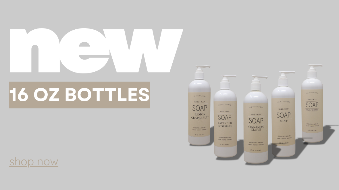 Discover clean, natural liquid soaps now in 16 oz refillable bottles. Gentle on skin, free of harsh chemicals, long-lasting, and ideal for hand, face, and body.