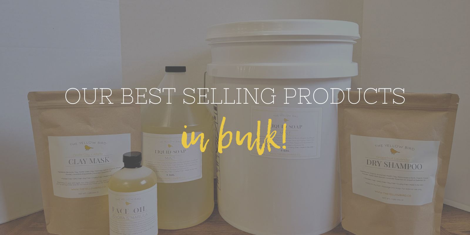 Turns out, finding bulk skincare that is made with natural ingredients is hard. We're here to make it easy! As an extension of our local refillery, our wholesale accounts can order many of our best selling products in bulk. Our bulk products are all chemical free, eco-friendly, and great for all skin types. Apply to become a Yellow Bird wholesaler and receive our bulk product catalog.