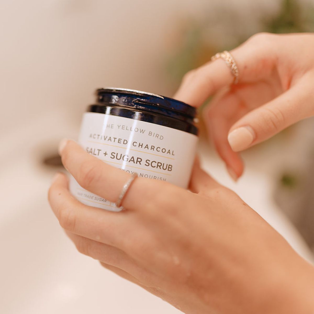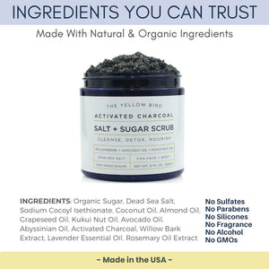 Give your skin a fresh start with this premium all-natural scrub from The Yellow Bird. Formulated with dead sea salt and organic sugar, it gently exfoliates to reveal smooth, touchably soft skin while activated charcoal works to draw out dirt, oil and impurities from face, body, under-arms and feet.